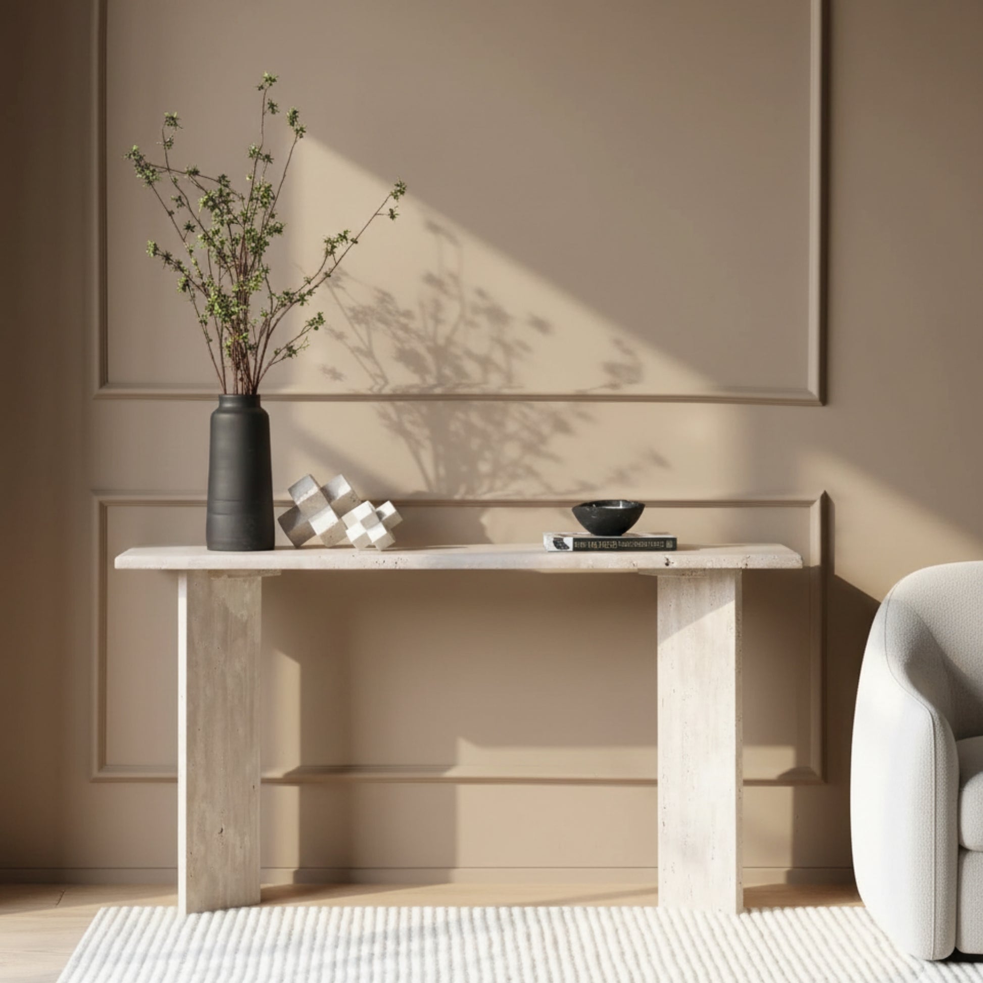 La Console en Travertin – Layan incarne une parfaite harmonie entre élégance et praticité.