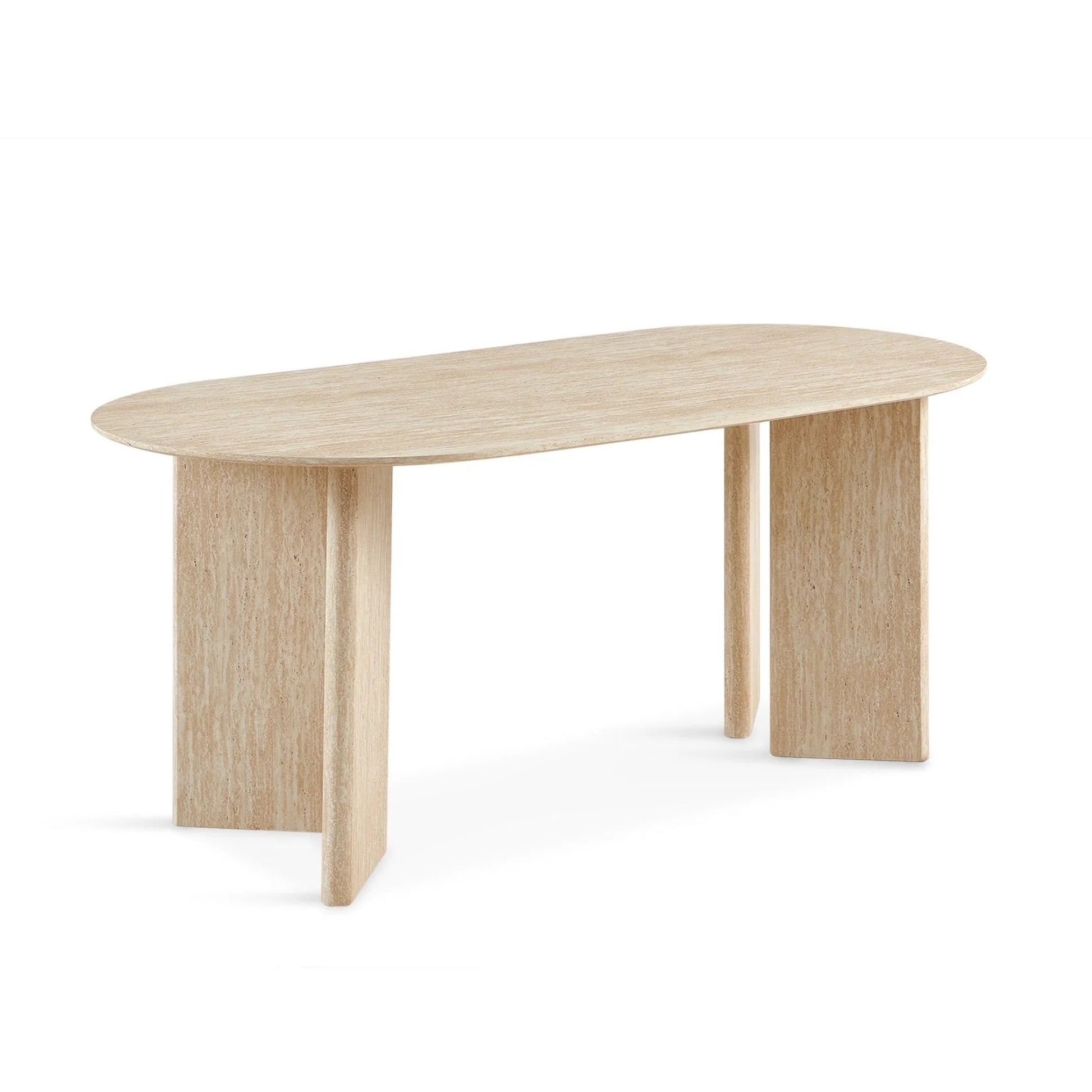 La Table Ovale Kali en travertin naturel incarne une harmonie subtile entre modernité et authenticité.