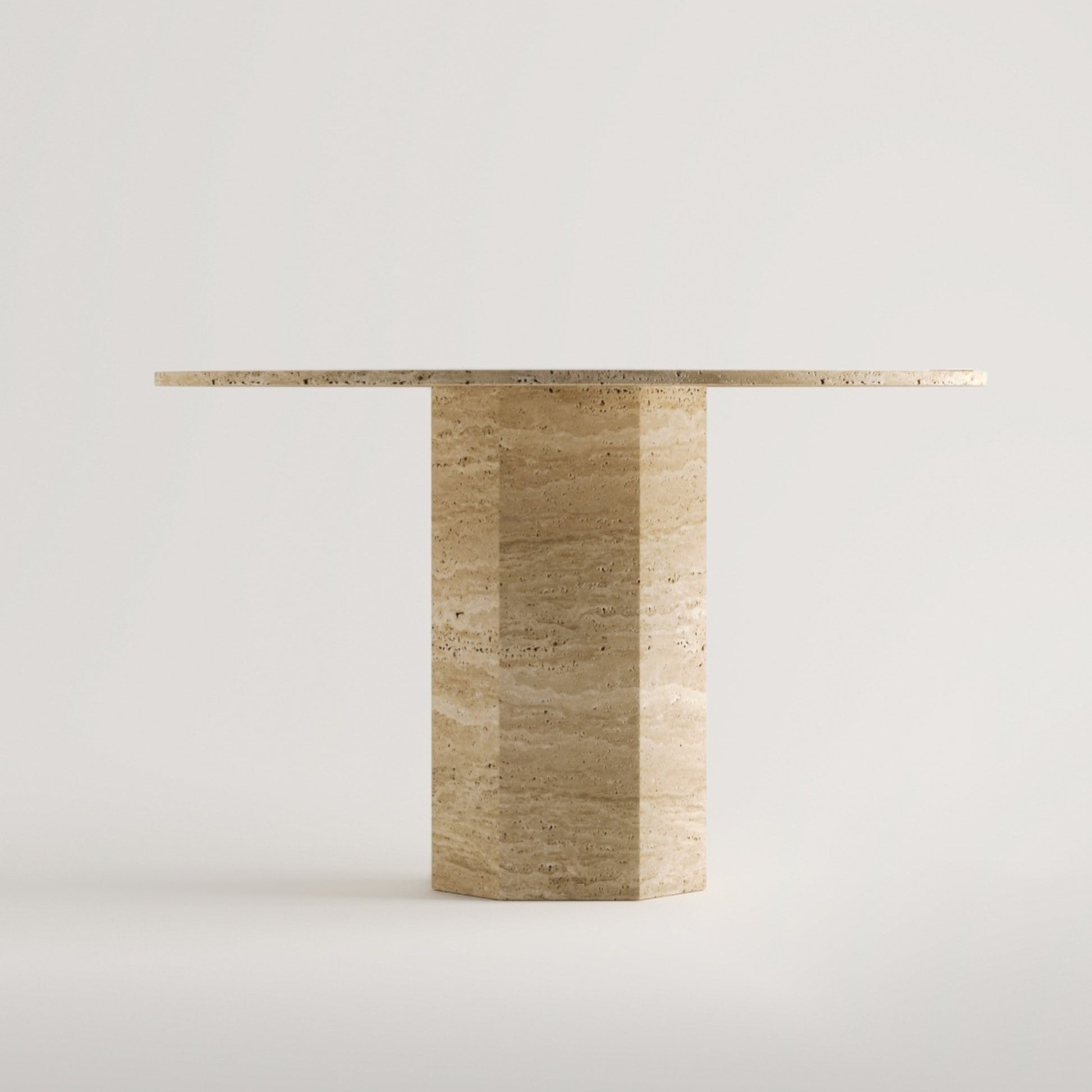La Table Ronde Ola en travertin naturel incarne la sophistication et le savoir-faire artisanal.